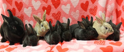 Amelia was abandoned at a local shelter. A day later she gave birth to 8 kits. Amelia is a beautiful Mini-Rex with velvety soft fur. She is a great Mom!