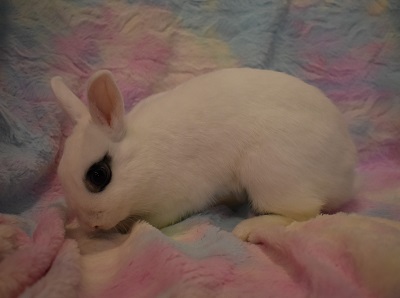 Dot is an adorable little hotot dwarf mix whose two favorite things are head pets and veggies. Since having her babies (Jelly and Bean) she has been loving getting a break from them and can’t wait to meet you! She loves doing zoomies but mostly spends her day lounging around and begging for more pets. This girl would also love a bunny friend and her foster mom highly suspects she would do well with either or both of her babies once they’re spayed.