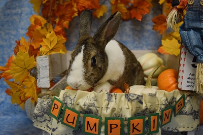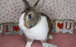 Oh, yes, and she’s blind in her right eye. Fiona came to the shelter with a corneal abrasion. Conservative treatment was initiated but we were still concerned and had Fiona checked out by a rabbit ophthalmologist at the end of June. She received a clean bill of health and is ready for her forever, loving, indoor home.